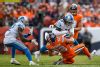 DENVER, CO - DECEMBER 22: Jalen Reeves-Maybin #44 of the Detroit Lions hits Jeff Heuerman #82 of the Denver Broncos and is flagged for a penalty for the hit in the second quarter of a game at Empower Field on December 22, 2019 in Denver, Colorado. (Photo by Dustin Bradford/Getty Images)