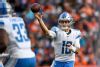 DENVER, CO - DECEMBER 22: David Blough #10 of the Detroit Lions passes against the Denver Broncos in the first quarter of a game at Empower Field at Mile High on December 22, 2019 in Denver, Colorado. (Photo by Dustin Bradford/Getty Images)