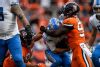DENVER, CO - DECEMBER 22: David Blough #10 of the Detroit Lions is sacked by Jeremiah Attaochu #97 of the Denver Broncos in the first quarter of a game at Empower Field at Mile High on December 22, 2019 in Denver, Colorado. (Photo by Dustin Bradford/Getty Images)