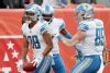 DENVER, COLORADO - DECEMBER 22: Jamal Agnew #39 of the Detroit Lions celebrates in the end zone with Justin Coleman #27 and Isaac Nauta #89 after returning a punt for a touchdown against the Denver Broncos in the second at Empower Field at Mile High on December 22, 2019 in Denver, Colorado. (Photo by Matthew Stockman/Getty Images)