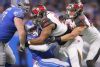 DETROIT, MICHIGAN - DECEMBER 15: Wes Hills #36 of the Detroit Lions is tackled by Ndamukong Suh #93 of the Tampa Bay Buccaneers during the first half at Ford Field on December 15, 2019 in Detroit, Michigan. (Photo by Gregory Shamus/Getty Images)
