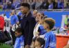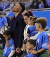 DETROIT, MI - DECEMBER 29: Marvin Jones #11 of the Detroit Lions and his family stand on the sidelines during a moment of silence for the passing of their young son, prior to the start of the game against the Green Bay Packers at Ford Field on December 29, 2019 in Detroit, Michigan. (Photo by Leon Halip/Getty Images)