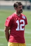 ASHWAUBENON, WISCONSIN - AUGUST 17: Aaron Rodgers #12 of the Green Bay Packers watches action during training camp at Ray Nitschke Field on August 17, 2020 in Ashwaubenon, Wisconsin. (Photo by Stacy Revere/Getty Images)
