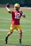 ASHWAUBENON, WISCONSIN - AUGUST 17: Aaron Rodgers #12 of the Green Bay Packers works out during training camp at Ray Nitschke Field on August 17, 2020 in Ashwaubenon, Wisconsin. (Photo by Stacy Revere/Getty Images)