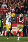 SANTA CLARA, CALIFORNIA - JANUARY 19: Davante Adams #17 of the Green Bay Packers makes a catch against the San Francisco 49ers during the second half of the NFC Championship game at Levi's Stadium on January 19, 2020 in Santa Clara, California. (Photo by Harry How/Getty Images)