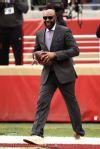 SANTA CLARA, CALIFORNIA - JANUARY 19: NFL Hall of Fame receiver Jerry Rice walks on the field during warm ups prior to their game against the Green Bay Packers in the NFC Championship game at Levi's Stadium on January 19, 2020 in Santa Clara, California. (Photo by Ezra Shaw/Getty Images)