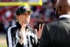 SANTA CLARA, CALIFORNIA - JANUARY 11: NFL referee Sarah Thomas speaks with Jerry Rice prior to the NFC Divisional Round Playoff game between the San Francisco 49ers and the Minnesota Vikings at Levi's Stadium on January 11, 2020 in Santa Clara, California. (Photo by Lachlan Cunningham/Getty Images)