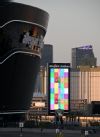 LAS VEGAS, NEVADA - SEPTEMBER 19: An exterior view shows color test bars on the marquee at Allegiant Stadium, the USD 2 billion, 65,000-seat home of the Las Vegas Raiders, on September 19, 2020 in Las Vegas, Nevada. The Raiders will play their first game as Las Vegas' NFL franchise at the glass-domed facility against the New Orleans Saints on September 21, coinciding with the 50th anniversary of the league's first "Monday Night Football" broadcast. (Photo by Ethan Miller/Getty Images)