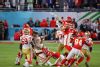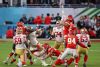 MIAMI, FLORIDA - FEBRUARY 02: Tyreek Hill #10 of the Kansas City Chiefs carries the ball against Fred Warner #54 and Jimmie Ward #20 of the San Francisco 49ers during the fourth quarter in Super Bowl LIV at Hard Rock Stadium on February 02, 2020 in Miami, Florida. (Photo by Tom Pennington/Getty Images)