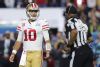 MIAMI, FLORIDA - FEBRUARY 02: Jimmy Garoppolo #10 of the San Francisco 49ers reacts against the Kansas City Chiefs during the fourth quarter in Super Bowl LIV at Hard Rock Stadium on February 02, 2020 in Miami, Florida. (Photo by Tom Pennington/Getty Images)