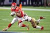 MIAMI, FLORIDA - FEBRUARY 02: Tyreek Hill #10 of the Kansas City Chiefs carries the ball against Fred Warner #54 of the San Francisco 49ers during the fourth quarter in Super Bowl LIV at Hard Rock Stadium on February 02, 2020 in Miami, Florida. (Photo by Tom Pennington/Getty Images)