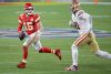 MIAMI, FLORIDA - FEBRUARY 02: Tarvarius Moore #33 of the San Francisco 49ers interferes with a pass intended for Travis Kelce #87 of the Kansas City Chiefs during the fourth quarter in Super Bowl LIV at Hard Rock Stadium on February 02, 2020 in Miami, Florida. (Photo by Maddie Meyer/Getty Images) ***BESTPIX***