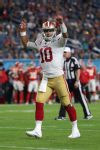 MIAMI, FLORIDA - FEBRUARY 02: Jimmy Garoppolo #10 of the San Francisco 49ers celebrates after a touchdown against the Kansas City Chiefs during the third quarter in Super Bowl LIV at Hard Rock Stadium on February 02, 2020 in Miami, Florida. (Photo by Tom Pennington/Getty Images)