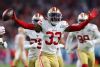 MIAMI, FLORIDA - FEBRUARY 02: Tarvarius Moore #33 of the San Francisco 49ers celebrates after intercepting a pass by Patrick Mahomes #15 of the Kansas City Chiefs (not pictured) during the third quarter in Super Bowl LIV at Hard Rock Stadium on February 02, 2020 in Miami, Florida. (Photo by Kevin C. Cox/Getty Images)