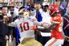 MIAMI, FLORIDA - FEBRUARY 02: Jimmy Garoppolo #10 of the San Francisco 49ers is forced out of bounds by Rashad Fenton #27 of the Kansas City Chiefs during the fourth quarter in Super Bowl LIV at Hard Rock Stadium on February 02, 2020 in Miami, Florida. (Photo by Andy Lyons/Getty Images)