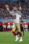 MIAMI, FLORIDA - FEBRUARY 02: Jimmy Garoppolo #10 of the San Francisco 49ers celebrates after a touchdown against the Kansas City Chiefs during the third quarter in Super Bowl LIV at Hard Rock Stadium on February 02, 2020 in Miami, Florida. (Photo by Tom Pennington/Getty Images)