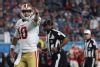 MIAMI, FLORIDA - FEBRUARY 02: Jimmy Garoppolo #10 of the San Francisco 49ers celebrates with Raheem Mostert #31 after a touchdown against the Kansas City Chiefs during the third quarter in Super Bowl LIV at Hard Rock Stadium on February 02, 2020 in Miami, Florida. (Photo by Tom Pennington/Getty Images)