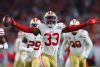MIAMI, FLORIDA - FEBRUARY 02: Tarvarius Moore #33 of the San Francisco 49ers celebrates after intercepting a pass by Patrick Mahomes #15 of the Kansas City Chiefs (not pictured) during the third quarter in Super Bowl LIV at Hard Rock Stadium on February 02, 2020 in Miami, Florida. (Photo by Kevin C. Cox/Getty Images)