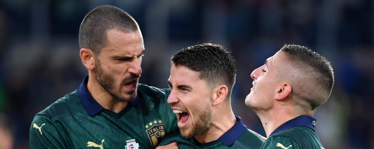 Los goles de Jorge Frello Jorginho, de penalti, y de Federico Bernardeschi lanzaron al seleccionado de Roberto Mancini, que lidera el grupo con 21 puntos.