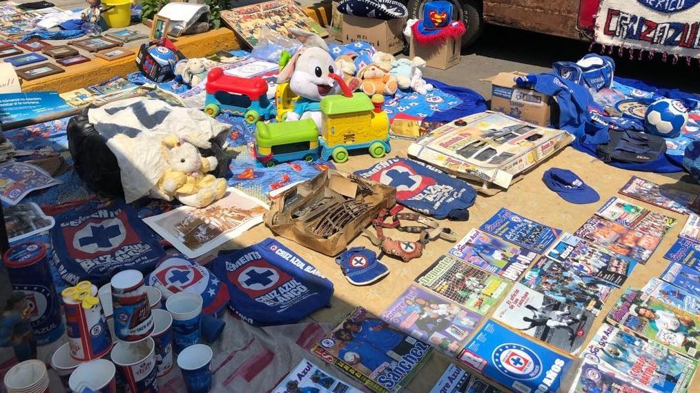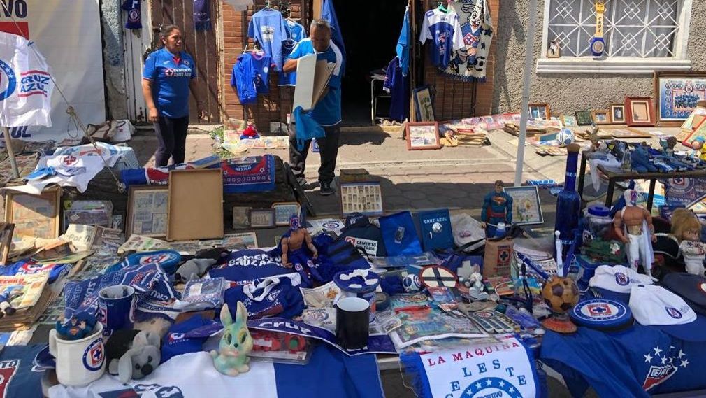 Con excepción del domingo, su día a día es levantarse a las 3 de la mañana para dirigirse al metro La Raza a poner su puesto de chácharas y a partir de las 5 ya está vendiendo. Rubén se dio el lujo de romper la costumbre para compartir sus reliquias con la afición azul.