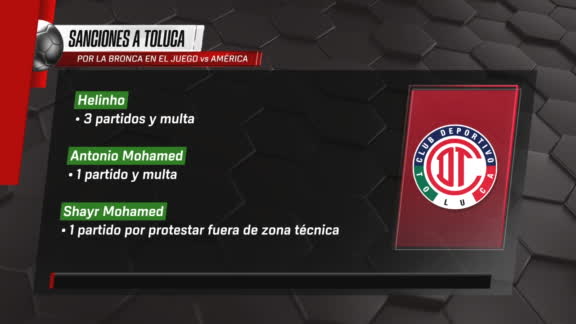 ¿Cuáles son las multas y sanciones para los jugadores de América y Toluca?